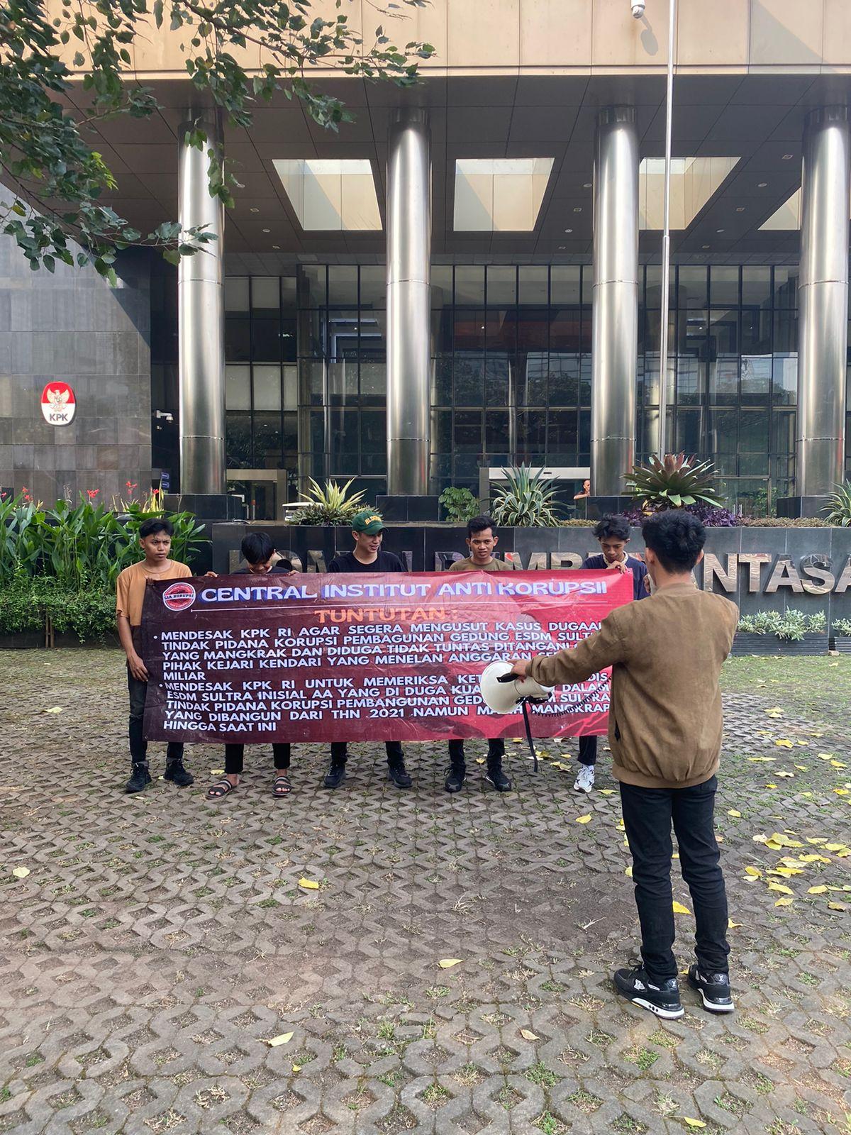 “kami minta KPK RI untuk memeriksa keterlibatan Kadis ESDM Sultra inisial “AA” yang di duga kuat terlibat dalam tindak pidana korupsi pembangunan gedung ESDM Sultra yang menelan anggaran sebesar 7,5 Miliar yang dibangun dari tahun 2021 dan masih mangkrak sampai saat ini”. Tutupnya(Bar)