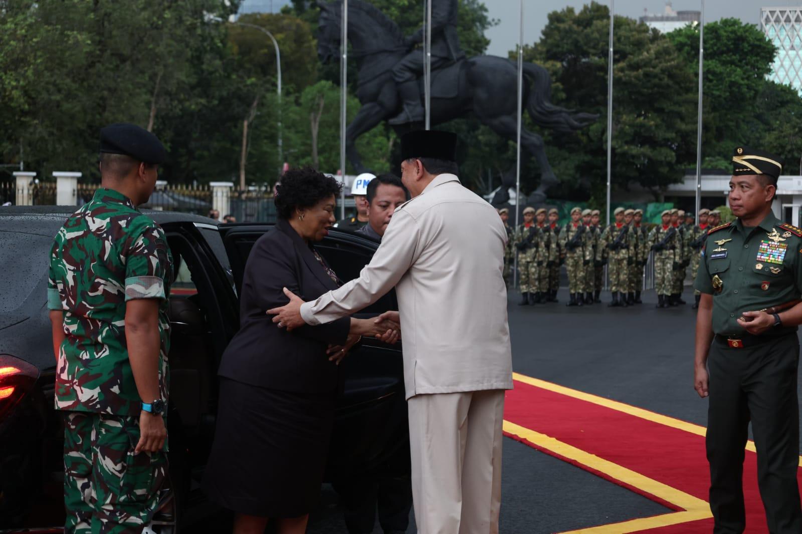 Panglima TNI Jenderal TNI Agus Subiyanto mendampingi Menteri Pertahanan Republik Indonesia (Menhan RI) Sjafrie Sjamsoeddin menerima kunjungan kehormatan Minister of Defence and Military Veterans of the Republic of South Africa, Matsie Angelina Motshekga, di kantor Kementerian Pertahanan, Jakarta, Rabu (22/10/2025).
