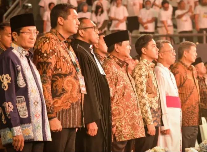 Turut hadir dalam perayaan yakni Wakil Presiden Gibran Rakabuming, Ketua Dewan Perwakilan Daerah Sultan Bachtiar Najamudin, para menteri Kabinet Merah Putih, Panglima TNI Jenderal Agus Subiyanto, Kapolri Jenderal Listyo Sigit Prabowo, para Kepala Staf Angkatan, tokoh nasional, dan para tokoh agama. (BPMI Setpres/Ria).