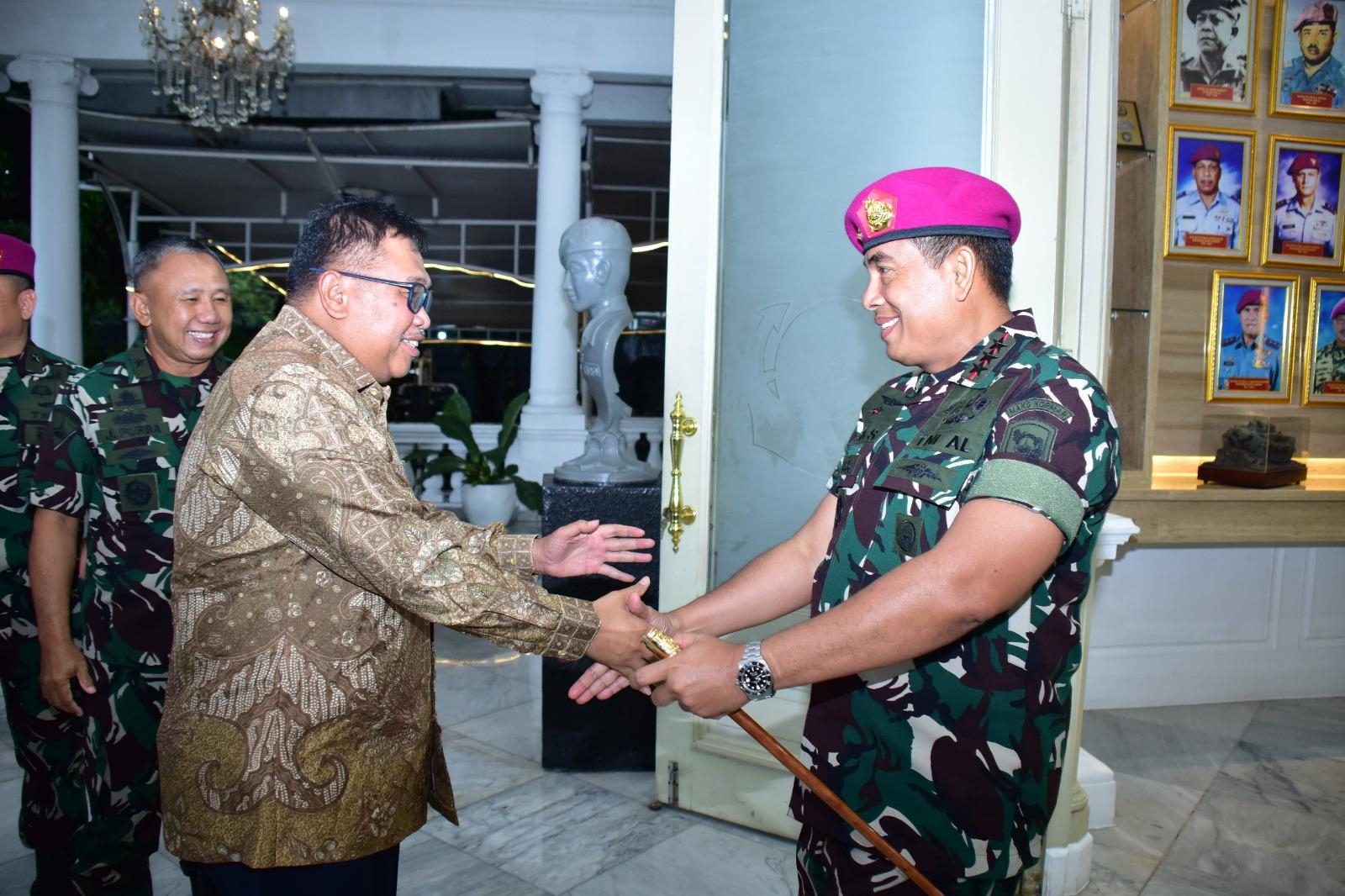 (Jakarta).* Panglima Korps Marinir (Pangkormar) Letnan Jenderal TNI (Mar) Dr. Endi Supardi, S.E., M.M., M.Tr.Opsla., CHRMP., CRMP., menerima Courtesy Call Bupati Takalar, Provinsi Sulawesi Selatan, Bapak Ir. H. Mohammad Firdaus Daeng Manye, M.M., bersama Anggota DPR RI Komisi VII, H. Achmad Daeng Se’re, di Ruang Kerja Pangkormar, Markas Komando Korps Marinir, Jalan Raya Usman dan Harun No. 40, Kwitang, Jakarta Pusat, Senin (12/01/2025).