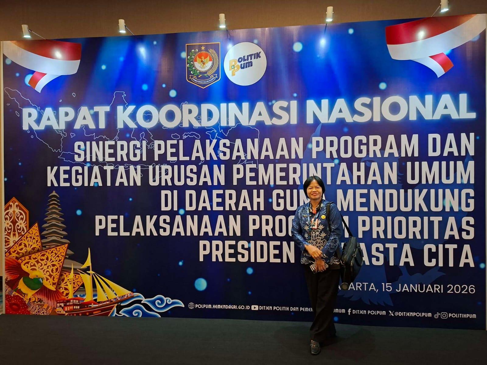 Jakarta,LiraTV.id – Kepala Badan Kesatuan Bangsa dan Politik (Kesbangpol) Kabupaten Barito Timur, Anda Kriselina, menekankan pentingnya sinergi antara pemerintah pusat dan daerah untuk memastikan pelaksanaan program prioritas nasional berjalan efektif, termasuk di daerah yang memiliki keterbatasan anggaran. Pernyataan ini disampaikan saat menghadiri Rapat Koordinasi Nasional (Rakornas) Sinergi Pelaksanaan Program dan Kegiatan Urusan Pemerintahan Umum, yang digelar di Jakarta pada Kamis, 15 Januari 2026.