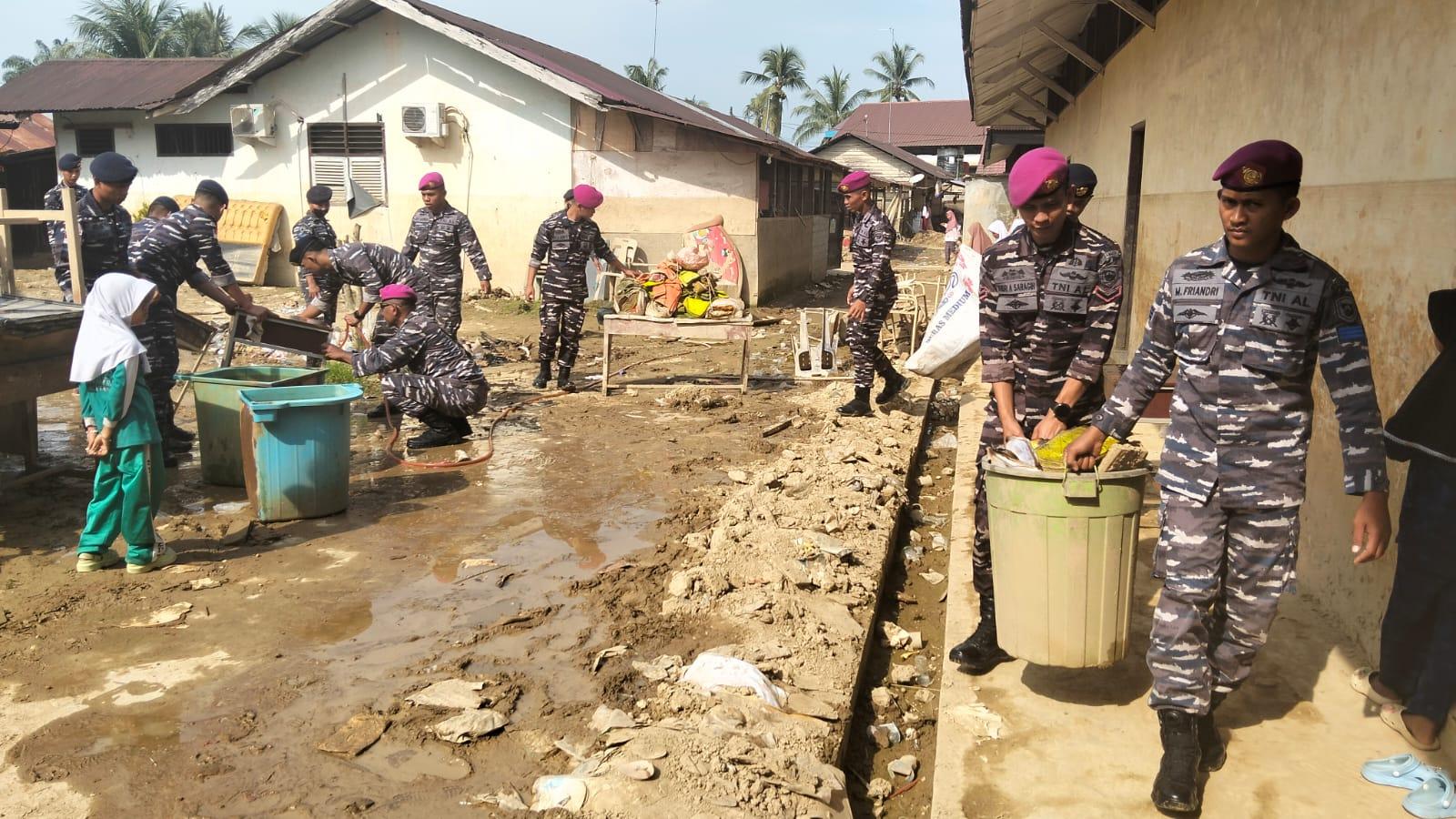 Prajurit Batalyon Infanteri 8 Marinir yang tergabung dalam Satuan Tugas (Satgas) Penanggulangan Bencana Kodaeral I melaksanakan aksi tanggap darurat dengan membantu membersihkan pembersihan sarana pendidikan di berbagai Sekolah Dasar di Aceh Tamiang, salah satunya di SDN 1 Tualang Cut Kec. Manyak Payed Kab. Aceh Tamiang. Aceh. Kegiatan ini difokuskan pada pembersihan material lumpur tebal serta tumpukan sampah yang terbawa arus ke dalam ruang kelas dan halaman sekolah. Kamis, (22/01/2026).