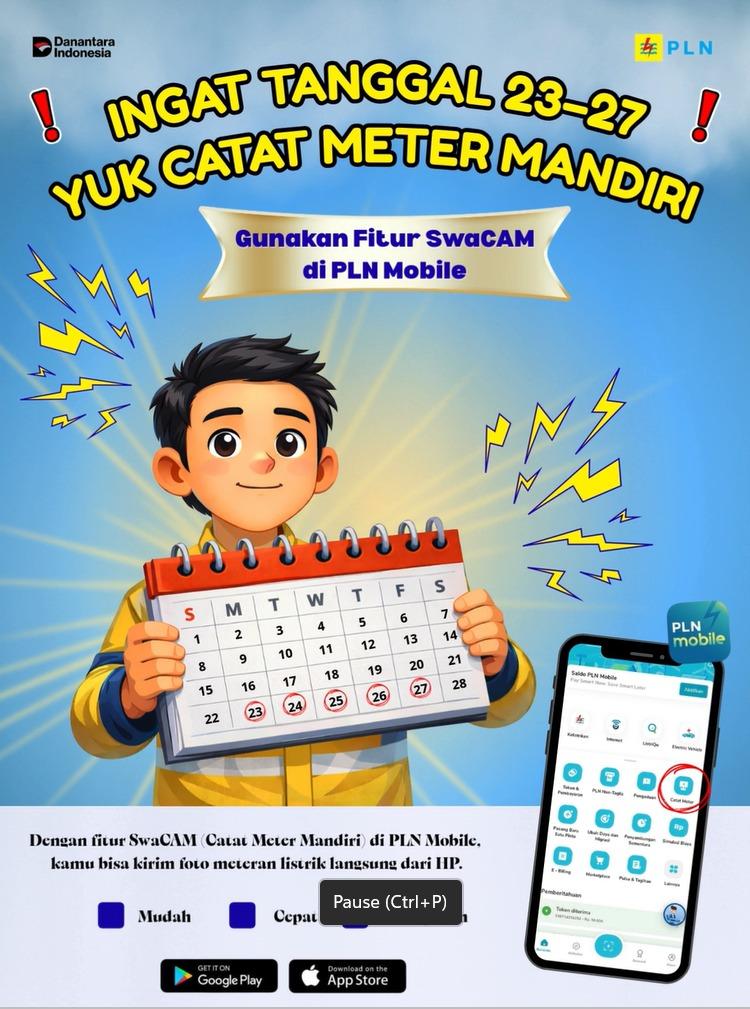 Ia menambahkan bahwa manfaat Swacam tidak hanya dari sisi kemudahan, tetapi juga meningkatkan keakuratan data dan mengurangi potensi kesalahan pencatatan. “Kami mengimbau pelanggan untuk memanfaatkan periode tanggal 23 sampai 27 setiap bulan. Dengan melakukan Swacam tepat waktu, pelanggan dapat mengontrol penggunaan listriknya sekaligus mendukung pelayanan yang lebih cepat dan transparan,” tambahnya.