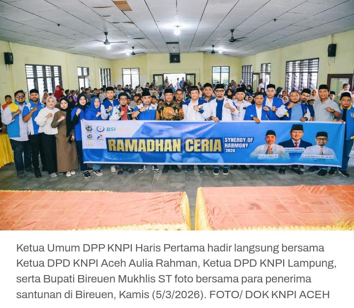 Kegiatan bertajuk Ramadan Ceria-Synergy of Harmony tersebut digelar oleh Dewan Pengurus Pusat (DPP) Komite Nasional Pemuda Indonesia (KNPI) dengan mengunjungi langsung wilayah terdampak banjir. Program ini berlangsung pada Rabu (4/3) di Aceh Tengah dan dilanjutkan pada Kamis (5/3/2026) di Bireuen.