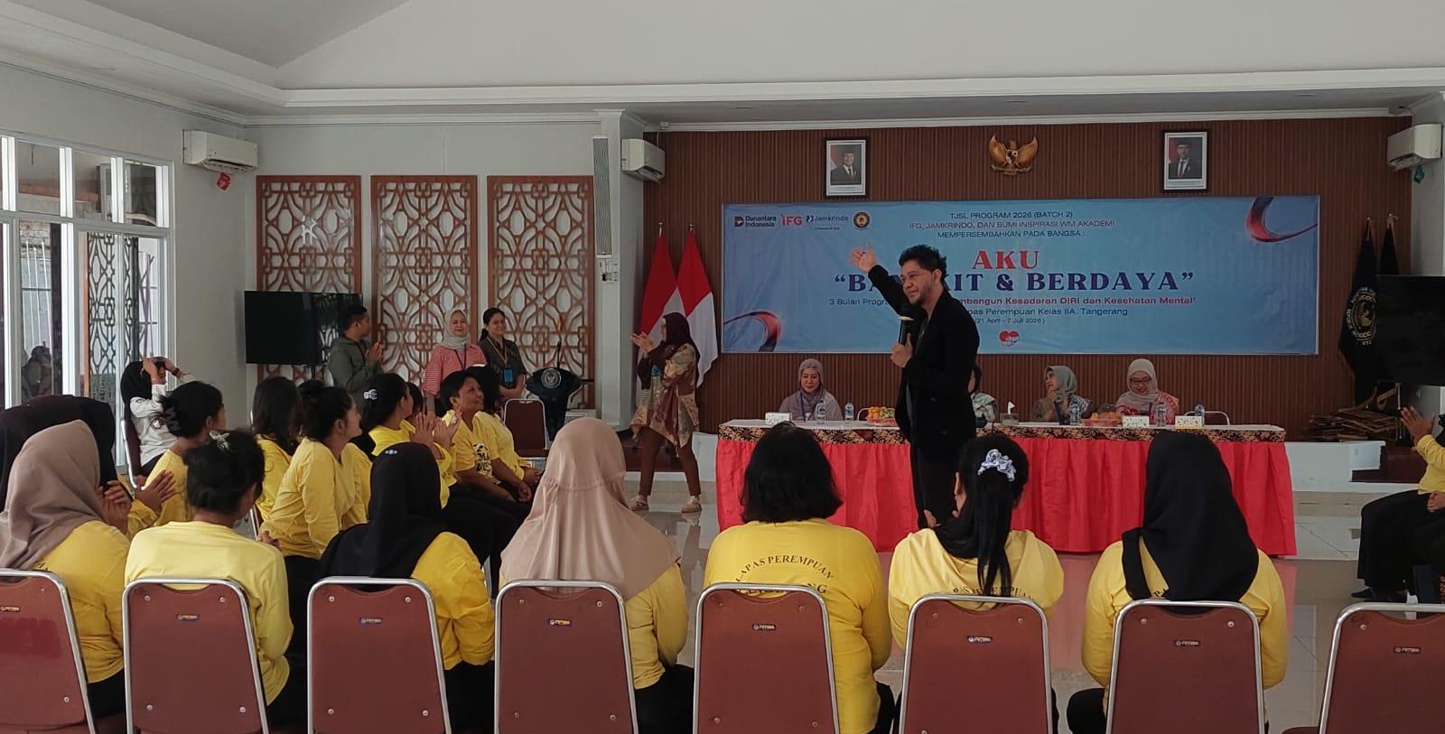 Liratv.id – Program Tanggung Jawab Sosial dan Lingkungan (TJSL) Batch 2 tahun 2026 bertajuk “Aku Bangkit dan Berdaya” resmi dilaksanakan di Lapas Perempuan Kelas IIA Tangerang. Program ini merupakan kolaborasi antara Indonesia Financial Group (IFG), PT Jamkrindo, dan Yayasan Bumi Inspirasi WM Akademi. Selasa, 21/4/26.